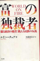 エイミー・チュアはアメリカでの仮想を出していますが、話を分かりやすくするために、日本での仮想を出してみましょう。要するに豊かな華僑と貧困のフィリッピンとの関係です。日本での少数異民族は韓国系の人々です。長年苦労してとうとう孫正義のような人が自由経済の下でたくさん出てきます。これらが日本の基幹産業の大方を握ります。豊かな韓国系は日本人の運転手やメイドを雇います。日本人は食うや食わずの生活をしているので、高等教育など受けることも受かることもありません。裕福な韓国系の子弟だけが高等教育を受け、ますます金持ちになり、ベンツを乗り回し、たとえ貧乏人の日本人の子供をはねたとしても雀の涙金で済ましてしまいます。このような状況の中で欧米の推す民主主義を広めたらどうなるか?小型の日本人ヒットラーが出てくることに間違いありません。民主主義の名のもとに政権を打建て、我々日本人の苦悩は経済を握るユダヤ人=韓国系よるものだ、これらを抹殺しないと日本人は豊かな生活ができないと主張し始めるのです。それで政権を取った暁には大虐殺が起こるのです。フィリッピンでも、インドネシアでも、中南米、アフリカでも同じようなことが起こっているのです。これを普遍化すると、欧米そのものが自由経済で豊かになり、その他のものは割を食って反対に貧しくなったという考え方に行き着きます。世界の貧者はアメリカの金満家のお説教に辟易としているのです。うまいことを言いながら、金儲けしか頭にないのだと思っているのです。実際、アメリカのごく一部の白人層にカネが集中しているのです。ではどうすればいいのかと問われると、はっきりとした解決策は見当たらないように思えます。