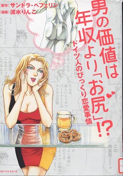 「コミック・エッセー」ということで、流水りんこが絵を描き、サンドラ・ヘフェリンと流水りんこの対話が文になっています。ドイツは「カップル文化」ということで、ドイツの男も女も、若かろうが年をとろうが、相手なしでは一日も過ごせないという状況です。日本のように女子会とか、男だけが飲み屋で集うようなことはあまりないようです。どこに行ってもカップルで行動しないといけないというプレッシャがあるようです。パーティなど夫婦同伴が当たり前で、年をとって旦那が死んだりすると、結婚するかしないかが別にして、すぐさまパートナーを作るようです。相手を選ぶ基準は女だったら、男の匂いが自分にあっているかどうかで選ぶようです。男の社会的地位や年収などは、この臭いと比べたら二の次になるようです。だから失業者で筋肉満々の男が女性弁護士とカップルになったりしています。女性弁護士では犯罪者の男に恋をしてしまって、弁護士の免許を剥奪されてしまったという事例もあるくらいです。ドイツでは女も働くことが当たり前ですから、レストランの勘定など割り勘です。男が全額払うとお返しにセックスでもしないといけないかというプレッシャがかかり、ドイツの女はそれを嫌がります。だからプレゼントもカネのかかるものではなく、旅先や出張先の土地で拾った砂や貝殻やドングリだったりします。ドイツ女で思い出されるのは森鴎外です。わざわざ日本に鴎外を追っかけてきましたが、親戚じゅうの固陋な考え方で追い返されています。日本人のたくわん臭を好む西洋女もいるのだとビックリしてしまいます。日本人は自分では無臭であると思っていますが、フィリッピンやタイの売春婦が「日本人はウンコ臭い」とよく言っています。まれにこの匂いが好きな女が欧米にいるのですから、糠付けの漬物や納豆を食べて、欧米を旅行すれば時にはもてるかもしれません。