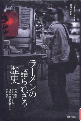 なんでアメリカ在住のアメリカ人の教授がラーメンついて一冊の本を書いたのかさっぱりわかりません。歴史の先生でありますが、よりによってラーメンをテーマに選ぶなんて、奇をてらったのか、まともな論文ではレビューに載らないのかと思ったのか、いずれにしてもステーキを食べているばっかりのアメリカ人に、こだわりの多いいラーメンについて語られては、日本人にとって面子が潰れる思いがするでしょう。表紙の写真だって、いまや見かけるものではありません。ソルト先生は広大なニューヨーク大学の図書館から、インターネットの検索から取り出したのでしょう。日本に来ないでも、今の時代、日本に現に住んでいる人よりも多くの情報をもつことができるのだと初めてわかりました。