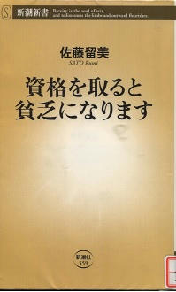 箔を付けたいと誰しも思うことでしょう。女性の化粧だって一種の箔でありましょう。美しくあれば金持の男の財布を支配できるかもしれません。資格も一種の箔であって、これがあればお金がよってくると思うからみんな資格を取りたがるのでしょう。ところが現在この箔もはげかかって、その輝きがなくなりつつあります。弁護士も公認会計士も超難関の資格ですが、この資格を持っていても生活保護程度かそれ以下の収入しかないものが多いそうです。法律が改正されて一時期これらの資格保持者が増えましたが、それにみあうほど仕事は増えていないものですから、とりわけ新規開業者が困難に陥っています。もちろん既存の業者も日本の景気の低迷から収入を減らしています。訴訟もアメリカ並みに増えると思われましたが、それほどでもなく、小額訴訟などは司法書士も取り扱うことが出来、なおかつ個人が自分ひとりで裁判していることにもよります。高い銭を出して弁護士など雇うという発想はありません。税理士という職種も存亡の危機になっています。いまや会計ソフトがあり、毎日記帳していれば、決算までやってくれます。