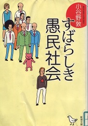 小谷野敦によりますと、「真の愚民」とは「有名大学や大学院を出て、なお愚である」人をことです。「ただイデオロギー的な目論見によって真実を捻じ曲げ隠蔽しようとする学者連があれこれとポストモダンナインチキを内輪で言い合っているだけ」の人たちのことです。愚民の具体的な例をいいますと、憲法9条の護憲論者ということになります。この9条をそのままにとると自衛隊は違憲となりますが、そのところを「曖昧」にし、この平和憲法は素晴らしいといっているのでは、「遵法意識の乏しさ」を証明していることになり、それを喜んでいるのは「平和主義者」か、中国や北朝鮮や韓国や終戦当時のアメリカぐらいのものです。「正義と秩序を基調とする国際平和を誠実に希求し・・」と憲法に書かれていても、相手がミサイルをぶっ放す北朝鮮や、いつまでも慰安婦問題をもちだし、カネをせびり取ろうとしたり、竹島を占領している韓国や、尖閣や沖縄を自国の領土と主張する中国などを相手にしては、この憲法も虚しいものになります。