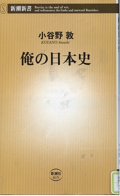 小谷野敦は「比較文学」の専門で、日本史の専門ではありませんから、「俺の日本史」の題名どおり、他人がどう思おうとも自分はこう考えるのだという日本史です。傍証としてテレビの大河ドラマを数々援用しています。ある面この本は俳優たちの評価表とも言えるでしょう。この本を出す前に「日本人のための世界史入門」を出したのですが、アマゾンの匿名批評で、「上から目線」の何様野郎だと言われ、『人を「上から目線」などと言う、頭が悪いのにプライドばかり高いやつらへの嫌味』も込めて、このタイトルをつけたそうです。「日本人のための世界史入門」は13万部売れたそうで、この印税だけで3000万円くらいあるでしょうから、当分の間、大学の講師などといったアルバイトもしなくても食っていけそうです。おまけにこの二番煎じの「俺の日本史」も売れれば、小谷野敦も売れっ子ライターとしての地位を獲得して出版社からひっぱりだこになりますから、もはや権威はあるがそれほど給料が高いわけでもない東大の教授になる野望も色あせたものになるでしょう。テレビに出てコメンテーターの列に加わり、「頭の悪い」他のコメンテーターをバシバシと切ってもらいたいものです。