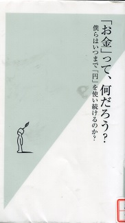 この本のタイトルに対して、日本人だから円を使うのではないかと言ったら、偏差値の低い学生の答えでありましょう。東大卒の答えはもっと複雑で、象徴的な言葉が飛び交います。「評価」「信用」「格差」「自由」一万円札は肉も買えて、ひょっとしたら女も買えるのではないかと即物的に思っていたりすると、その先一歩も前に進みません。教養とは遠回りする力です。まず一万円札は単なる紙切れだと考えてみる必要があります。普通なら紙切れだと松坂牛の肉と同価とは考えられません。お互いそれに見合う物で交換し合うでしょう。米30キロを持って行き、肉と交換しますが、毎度米30キロを担いで持っていくことは大変なことです。それでこの紙切れに「信用」を吹き込むと、あら不思議、肉と交換できます。お金とは「信用」とか「信頼」の象徴なのです。でも最近の日本や欧米の成熟した社会では絶対的なお金の「信用」度が揺らいでいるようです。今までの貨幣経済ではカネを稼いで、貯蓄や投資をし、大いにそのための労働に時間を使い、うまくいけば働かないでも「自由」に遊んで暮らせることができるようになるのが理想でした。今の若者はあまりにも格差がつきすぎて、もはやこのような無益な努力をしたがりません。まるで落語の世界になっているのです。江戸の長屋で昼間からぐうたら寝込んでいる店子を見て大家が説教します。若いのに今働いてカネを稼がないと安気な生活は出来ないぞと言えば、店子は「今その安気な生活をしています」このようなことをこの本では「自由時間経済学」といって、もはや今までの貨幣経済が旧式になりつつあるのだと言っているようです。