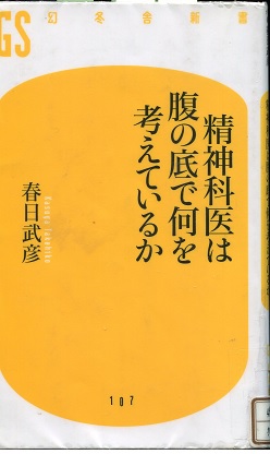 精神科医は精神科の患者と同じようなものであるから精神科医になったと言う説があると、春日自身が言っています。また春日自身も、親が豊かなのでコンビニでアルバイトなどしたことがなく、たぶん小さいころから勉強をし、親の言うとおり、医学部に入り、すんなりとそこを卒業したのでしょう。社会的経験も乏しく、医学書で聞き知ったことと、臨床で出会う患者の状況を見て、人間と社会はこういうものかと想像するだけです。たぶん性の悪い女と出会うこともなく、知的レベルと同じ育ちのいい女性と結婚もしているのでしょう。身内にはヤクザもいなければ、売春婦などもいないでしょう。精神病患者はある面精神の狭窄であるのですから、医者になるためには一心不乱に勉学をし、長い隔離をしいられるのですから、これも一種の精神の狭窄であります。おなじ精神の狭窄者でありますが、一方は人生の脱落者、一方は人生の成功者と別れるのはおもしろいことであります。