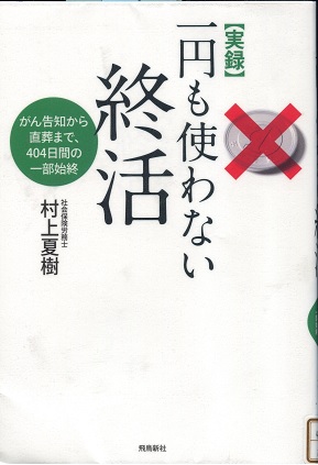 私もそろそろ終わりが近づいています。寝たきりになって死ぬのは想像するだけでたまりません。ボケてあっちにふらふら、こっちにふらふらもいただけません。威厳を持ってスッキリと死にたいものです。一応葬式は、「焼くだけの」葬式を頼んでいます。葬式業界ではこれを「直葬」とよんでいます。お経など読んでもらう必要はありません。戒名なんて不必要です。費用は20万円以下です。この本の例では9万円ですんでいます。国民健康保険から葬儀代として、広島市は4万円くらい出してくれます。
