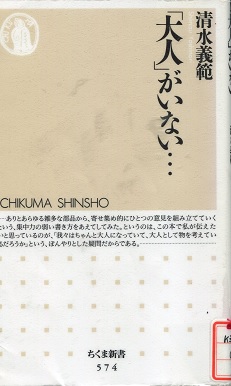 日本が豊かになって、このような傾向が現れた清水は言っています。ニートでもフリーターでもそれなりに食えるということがこの傾向に拍車をかけています。何となく生きていられるのだったら、別に苦しい思いをして、大人になる「脱皮」をしなくても、もとのままが「楽」でいいという考えです。ところがこのようなことはいつまでも続くはずはないと漬水は警告しています。我々団塊世代が死滅した後、子供子供した日本人を誰が対等に付き合ってくれるでしょうか。仕事をしないでいいものが食いたいと泣き叫ぶ子供日本人に誰がまともに相手をしてくれるでしょうか。この本は2005年頃書かれたもので、清水が60ちょっと前であります。あとがきでこう書いてあります。