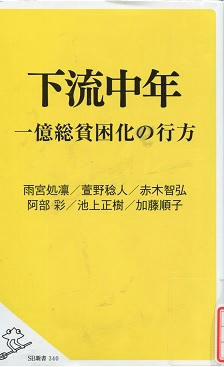 就職氷河期(94年~2005年)頃に20台であった若者も今や40代に達しています。正社員になれず、非正社員やフリーターが273万人もいるそうです。もらっている賃金は少ないので、厚生年金とか国民年金などまともに払っていない人が多い。やがて彼らが老人になると、日本はどうなることやら。国民年金しかない私はその年金では食えないので、未だに仕事をしています。この仕事も儲かることはないので、日々始末始末の生活を強いられています。最低の国民年金がなければ、みな生活保護を受けねばならなくなるけど、少子化で国力の衰退した日本にそれを支払うだけの能力があるかという問題があります。はっきりとして将来は暗い。今の我々団塊世代も私のような貧窮者も多いし、優雅な生活が出来る人は少数に過ぎません。今給料をもらっている人も、年々増えるということはないようで、かえって減りつつある状態です。すべての人が下流になれば、ある程度精神的に安定しますが、一人でも豊かな生活をしているのを見ると、自分の生活がますます惨めに見えてきます。だったら今からの生き方は「三猿」に尽き、「見ざる、聞かざる、言わざる」に徹しないといけないようです。そうでもないと精神的におかしくなることは、はっきりしています。もはや日本はブラック社会になりつつあるのですから、そのような社会とは関わらない引きこもりこそ、人間的にまともな人間ではないかと思われてきます。