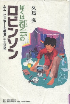 バックパッカーを長くやっていると、日本に帰っても適応できない状況になる人が多いらしい。日本で普通のサラリーマン生活ができなくなるようです。久島もその一人で、著述者をしながら都会でサバイバル生活をしています。貧乏国では日本では捨てられる食品を包んだビニールですら資源になります。久島もレトルト食品のビニール袋は捨てないでびっしり押入れに溜めています。それが水筒にも、財布にも、いろいろ加工できます。アパートの久島の部屋をイラストで描いていますが、ゴミ屋敷といってもいいくらいです。ここに30年間も住んでいます。風呂はありません。家賃は30年前と同じです。蚤やゴキブリと共生しています。蚤はバルサンで一気にやっつけたようですが、ゴキブリは冷蔵庫のなかまでもいついているようです。これで病気にならないのはインドで一ヶ月下痢をしつ続け、それを克服した経験によるものでしょう。彼の腸内細菌はどのような病原菌が入ってきてもスクラムを組んで押し込める働きをしているのでしょう。都市ガスを引いていないので、調理はもっぱらガスボンベコンロになります。そのくせ鍋には凝っていて圧力鍋とか、「はかせ鍋」とか持っています。料理本をいろいろ買ったそうですが、ほとんどは抹消なことばかり書いてあり、小林寛の「お鍋にスカートはかせて、おいしさ大発見」(光文社)で調理に開眼したそうです。日本に大震災が起こってインフラが破壊されても、久島だけは一人優々と生き延びることができるでしょう。