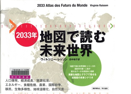 2010年に出版されたもので、(日本では2012年)その地点から2033年を予想したものです。今年2017年ですから、16年先の世界の状況を予測しています。現在の世界の人口は73億人だそうです。この本では当時の国連の予測として2025年には80億人、2050年には91億人、2100年には90億人に落ち着くと書いています。しかし現在の国連の予測では2100年には112億人になるとなっています。日本はどうなるかというと、2033年には1億1524万2000人だそうです。現在1億2711万人だそうですから、16年後先には1187万2000人少なくなる勘定です。この前北方四島を返さなかったロシアは、これも人口減少を向かえて、2033年には1億2675万7000人ということで、あの広い国土にバラバラと住んで、モスクワあたりに少し固まっているような状態なのでしょう。ロシアの男たちはアルコールならメチルアルコールでも飲む国民ですから、生涯年数も短く、Youtubeで見るとおり、車の走行でよく喧嘩していますから、死亡率も高く、早く死にますから、ますます減少化に拍車がかかるでしょう。中国と国境を接していますが、今もそうですがじわじわと中国人が越境してロシア領に入り、ロシア領を蚕食しています。そのうち再び中ソで戦争が起こるでしょう。このまま温暖化が続くとシベリアの凍土が溶け、シベリアに眠っている資源を取りやすくなります。こうなりますとロシアは当分の間働かなくても資源を売るだけで食べていけるようになります。今世界から経済封鎖を受けて苦しい状況ですが、そのうちサウジアラビアの王族のような暮らしが出来るかもしれません。こうなると昼間からウオッカを飲み、働かないでぶらぶらしているものですから、ますます早死にするでしょう。またまたロシアの崩壊がくるかもしれません。このような崩壊はこの本に書いていません。私が思うだけです。プーチンとの会談で経済協力を約束しましたが、日本は帰ってこない北方四島の一角にカジノ設備を作り、金と暇を持て余したロシア人を取り込み、ロシア人を破産させる経済協力が出来るかもしれません。