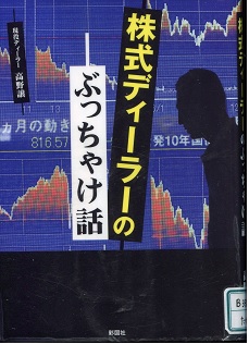 ディーラーの採用試験は500万円の枠を与えられ、それで相場を張り、三ヵ月後、一月でも150万円の利益を出せたら、合格だそうです。高野譲も会社に入る前は個人的にデイトレーダーをやっており、この会社でもなかなかの成績を残しているようです。どこの証券会社も同じで、瞬間利食いを行い、ちょっとでも高くなったらすぐ売り、それを繰り返すのだそうです。1円、2円でも、元の資金が億であれば何十万にもなるのでしょう。そのためにはマウスのクリック力が必要となります。経済を知っているとか、有名大学を卒業しているかとは関係ありません。運動神経がとろいのではディーラーには不向きです。ディーラーの仕事もやがてコンピュータに取って代われるでしょう。現に多くのファンドがコンピュータにその仕事をまかしています。今からは多くの仕事がコンピュータに取って代わられます。いま三浦問題で大騒ぎになっている将棋界も、プロもパソコンのソフトに勝てなくなっています。奨励会を卒業し晴れてプロの4段になった人に対して、コンピュータ開発の大学の教授が、嘆かわしいことだ、このような不毛業種に就いても、将来はないだろうと言っていました。人間には創造力があり、コンピュータにはそれがないといっても、将棋程度ではプロでもハッとするような手を指してきます。勝つためのプログラミングではそんなに創造力も必要ではないかもしれません。