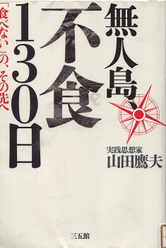 肩書きに「実践思想家」とあります。ただ言っているだけの糊口の徒ではないことを強調しています。実際腐ったものを食べたらどうなるか実験しています。スーパーからマグロの刺身を買ってきて、一週間ばかり車の中に放置して、「納豆みたいに糸を引いた」マグロを食べる実験をしています。味はそんなにかわらないと言っています。しばらくたって上半身が熱くなり、顔が真っ赤になり、全身が真っ赤になりましたが、それが2時間続いただけです。日頃の「不食」の効果がきいたのでしょう。食べないことは免疫を強くするとの証明です。無人島で130日間何も食べなかったというと嘘になります。雨水を飲んだり、時には海の産物を獲って食べたりしています。テレビのクルーが来て、それらがビールなどの贈り物をしてくれ、それを飲んでいます。しかし後半は自戒して何も食べていないと言っています。水だけで過ごしたのでしょう。沖縄方面の孤島ですから、一日中フルチンで過ごしています。何もすることがないのでぼっとして過ごしていたのでしょう。またよく寝たと言っています。性欲湧かないで一回も射精したことがないと言っています。この本を書いたのが2014年で、そのとき彼の年齢は60過ぎですから、そろそろ性欲も落ちてくるでしょう。おまけに飯を食っていないのですから、その方面の元気も出ないのかもしれません。新潟に帰って来てからも、性欲はなくなっていると証言しています。ものを食べないということは否が応でも聖人になれるということを証明しています。聖者になれるということはたやすいことで、食べないことに尽きます。我々高齢者はすべからく「不食」して、医療の手を煩わせず、粛々と亡くなることが必要ではないかと思われてきます。