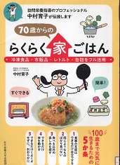 私の朝飯は味噌汁にいも、とうふ、玉ねぎ。えのきだけ、大根、卵などを入れ、ここで野菜ものをとっています。あとは干物の魚や、納豆、塩昆布、漬物を食べています。昼は2時ごろアンパンか食パンかを牛乳コーヒーで食べ、夕食は弁当をとっています。歳をとると料理も面倒くさくなり、去年はそれで栄養失調と貧血になり一か月入院をしました。少食が長生きの秘訣だと思っていましたが、年寄りは余分に食べないと体がもたないとわかりました。弁当が休みの時は、この本が書いているように冷凍食品やレトルト食品を買っておき、それを食べています。この本では冷凍餃子はメニュー通り焼くだけではなく、スープにしてほかの野菜を入れています。私もこれを真似てみましょう。