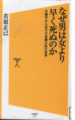 仮説に、将来男はなくなるということがあります。現に男であることを決めるY遺伝子が年々短くなり、1400万年後に消滅するだろうといわれています。男が男になるためには、「妊娠8週目から」アンドロジェン・シャワーというホルモンの洪水がなければなりません。何もなければ女性器ななるものが、それによって精巣、陰茎などが作られていきます。聖書でいう、男のあばら骨から女が作られたというのは嘘で、もともと女だったものから、Y染色体の遺伝子の指令で、男に変化したということです。つまり男になるためには女より一工程も二工程も作業が増えて、その分複雑になったが、もろさも兼ね備えることになります。幼児期男の子の方が女の子よりどの民族においても死亡率が高いというのもそれが関係しているのかもしれません。それからまた男の子は12,3歳の頃から第二回のアンドロジェン・シャワーを浴びます。これによって完璧な男になるのですが、ますます闘争心が旺盛になります。喧嘩、暴走行為に走ります。それでこの時期また死亡率が上がるのです。今日もニュースで女にもてないということで銃を乱射して何人も殺したアメリカの若者が警察官に射殺されています。中国人も最近アンドロジェン・シャワーが強くなったのでしょう。中国の戦闘機が日本の戦闘機に異常接近しています。たぶん操縦士は男でしょうから、このようなことが度々繰り返されるとやがて本当の喧嘩が起こるでしょう。どの哺乳類もテリトリーの中でオスが二匹いるとお互い排除しようとします。悲しいオスのサガであります。発情期には自分の子孫を残そうとし、自分以外のオスは皆敵とみなします。人間には特定な時期の発情期はなくなりましたが、毎日発情できるということもいえるので、ますます困ったことになります。世界中のあちらこちらで諍いが絶えません。たぶん創造主もこのような男を失敗作だと思っているのでしょう。だから年々遺伝子を短くして、やがてこの世からオスを消滅させる気になっているのでしょう。