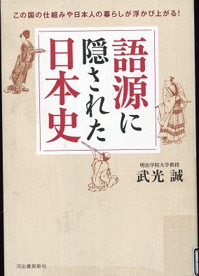 八百長という言葉があります。実際に明治時代に八百屋の長兵衛がいて、相撲取りの伊勢の海親方と碁をしていつもわざと負けていました。それからわざと負ける相撲を八百長といわれるようになります。「幕の内弁当」は相撲と関係ありそうですが、本当は歌舞伎と関係があり、江戸時時代の歌舞伎は朝から晩までやりますから、その間に弁当がでていたのです。相撲の幕内の意味は「将軍が相撲見物のときに、一人前の力士は将軍の座のある幕に、内がわに伺候することを許されたことから生まれた」言葉だそうです。行司の「はっけよい」とは、古代の宮中相撲で立会いが「はっ競(きほ)えやっ」と叫んで、力士がぶつかっていたことからきました。相撲のひいき筋のことは「谷町」といいますが、大阪の谷町筋に、大金持ちの外科医・荻谷義則という人がいて、「力士の怪我や病気の面倒をよく見てくれた」ことから、この言葉が生まれました。語源を調べるだけで日本史がわかるというのが頷けます。八百屋の長兵衛も、しがない八百屋さんとしても「八百長」として名が残っているのですからたいした者です。「那須与一」という名前から、この人は何番目かに生まれたのかわかります。「与」とはもともと「余」のことで、11番目の子供は11郎と呼ばないで、十の余りが一つということで、「余一」、「余」では格好が悪いので「与」になったということです。だから那須与一は11番目の子供ということになります。「旦那」ということは今では軽々しく扱われていますが、これはもともとサンスクリット語からきているもので、「ターナ」と発音され、寺に寄進する大金持ちのことを指すのです。低給料で日曜日安い焼酎を飲んでいて、自分のことすらことを欠く旦那とは大違いです。「暖簾」ももともと商売屋で使うものではなく、「禅寺で冬に簾の隙間を塞ぐために使った垂れ幕」のことだそうで、だから暖かい簾(すだれ)と書いているのです。それが後々商売屋に普及したということです。「すっぱ抜く」の「すっぱ」は「抜く」を強調する形容動詞化と思いましたが、漢字で「透波」と書き、戦国時代他国の情報を入手するスパイのことを指します。何気なく使っている言葉にもいろいろな歴史が含まれているということはこの本で重々知らされました。