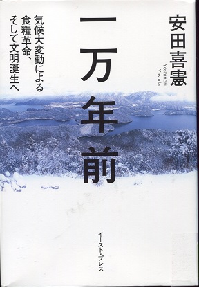 湖の底をボウリングしその土を採取して、そこに含まれる花粉とかいろいろな内容物で、その当時の気候などがわかるそうです。連続的に採取していますから、どのように変化したのかもわかります。これを「年稿」と呼び、樹木の年輪にたとえられるでしょう。東アジアの稲作漁労採集文化のほうが麦作牧畜文化よりは地球に優しいと断言しています。牧畜などでは広い草原が必要になりおのずと他国を侵略するようになります。その点漁労ではその辺にいる魚を取るだけですから、戦いなど起こらないと言っています。だから縄文人は平和に暮らしていただろうと推定しています。どうも私には安田先生は思い込みの強い人だと思われます。縄文人だって縄張り争いはあったでしょう。縄文人が人間として理想的な暮らしをしていたとは思われません。