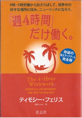 ティモシー・フェリスはこのようなシステムをつくったおかげで、自由時間ができ、今では6カ国語もマスターし、日々格闘技の練習にも精出しています。巻末に金持ちになるための参考になる本を出しています。古典というものはあまり見つかりません。ソローの「森の生活」くらいなものです。「デジタル遊牧民」とって本などお荷物になるだけでしょう。いまでは先進国ではどこでもインターネット環境が整っていますから、パソコンを使えば好きな本はどこにいても手に入るでしょう。私もこのようなことができるならしてみたいものですが、インターネットを駆使して金儲けできるほどの能力はありません。』
