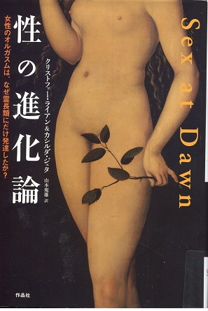 チンパンジーやボノボと人間が分離したのが約500~600万年前、DNAの違いはたった1.8%です。チンパンジーやボノボを観察すれば、本来の人間のセクシュアリティがわかると言っています。要は「乱婚」なのです。農業が始まる一万年前の先史時代、狩猟採集時代には部族内の男と女は分け隔てなくセックスし、子供はみんなが父親、みんなが母親でうまく機能していたのです。冷蔵庫などありませんから、獲ってきた獲物は即座にみんなで分配しました。溜めるということはしません。自然が食物の宝庫で、明日になればまた何とか獲物にありつけるのです。ボノボのメスは誰とでもセックスしますからオスの緊張度はあまりなく、オス同士の戦いなどはありません。チンパンジーは一見上位のオスの支配に服しているようですが、その実メスは下位のオスと隠れて多いにセックスをしています。今でも人間の女性はセックスのクライマックスになると「よがり声」を発しますが、この意味はこの種の共通の「乱婚」性によります。他のオスたちにもっと私とセックスして呼びかけているのです。女性は資質の高い男性を選ぶために、財産や財を勝ち取る能力のある男を選ぶという通説がありますが、これは農業が出来てから後のことです。先史時代の女たちは自分の膣の中で数多くの男たちの精液を戦わしていたのです。だからチンパンジーもボノボも人間もこの楽しい競争で男のペニスや睾丸が他の動物に比べて異常なほど大きくなっているのです。農業が出来て、土地に区切りが出来ると、男も女も誰もが共有するものではなくなります。とくに女は土地と同じ存在になって行きます。何十万年も乱婚で過ごしてきた人類が一夫一妻に暫時なって行きます。しかし現在この人間性を無視した制度がいろいろな破綻をもたらしています。男は浮気します。女は性欲なき者と扱われ、無理して貞節を装っていますが、思わず発する「よがり声」に太古の郷愁が甦ってきます。この本でも書いていますが、日本の女性は日本では慎ましいセクシュアリティを強制されていますが、毎年多くの女性がタイのリゾート地ブーケットに飛行機でやってきて、「行きずりのセックス」を満喫しているようです。日本の女ばかりではありません。欧米の女も「イスタンブールやバリ、ガンビア、タイ、ジャマイカ」などで「後腐れのない」セックスを楽しんでいると書かれています。